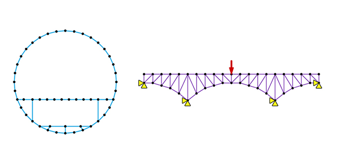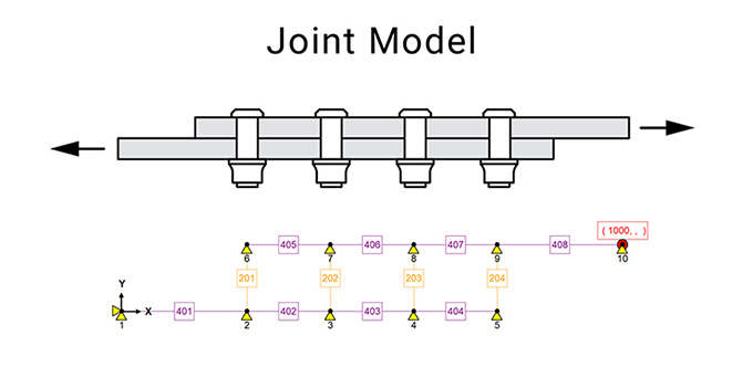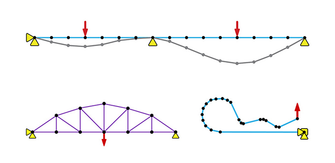 - All elements (beams, rods, springs) can be connected in any manner and combined in the same model.