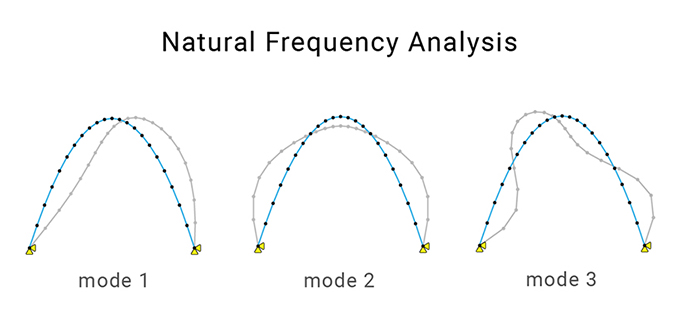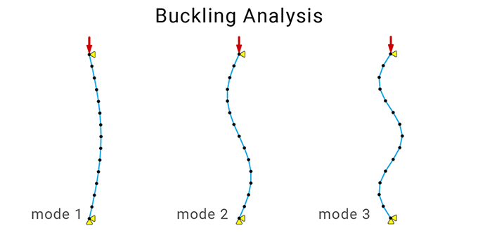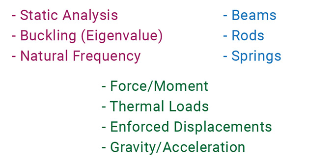 - Static analysis, buckling anlaysis (Eigenvalue buckling), natural frequency analysis, and static analysis with nonlinear geometry (MSC Nastran only).