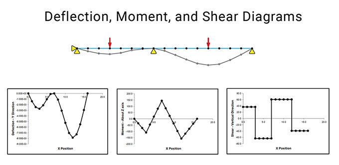 - Deflection, Shear, and Moment diagrams for continuous beams.